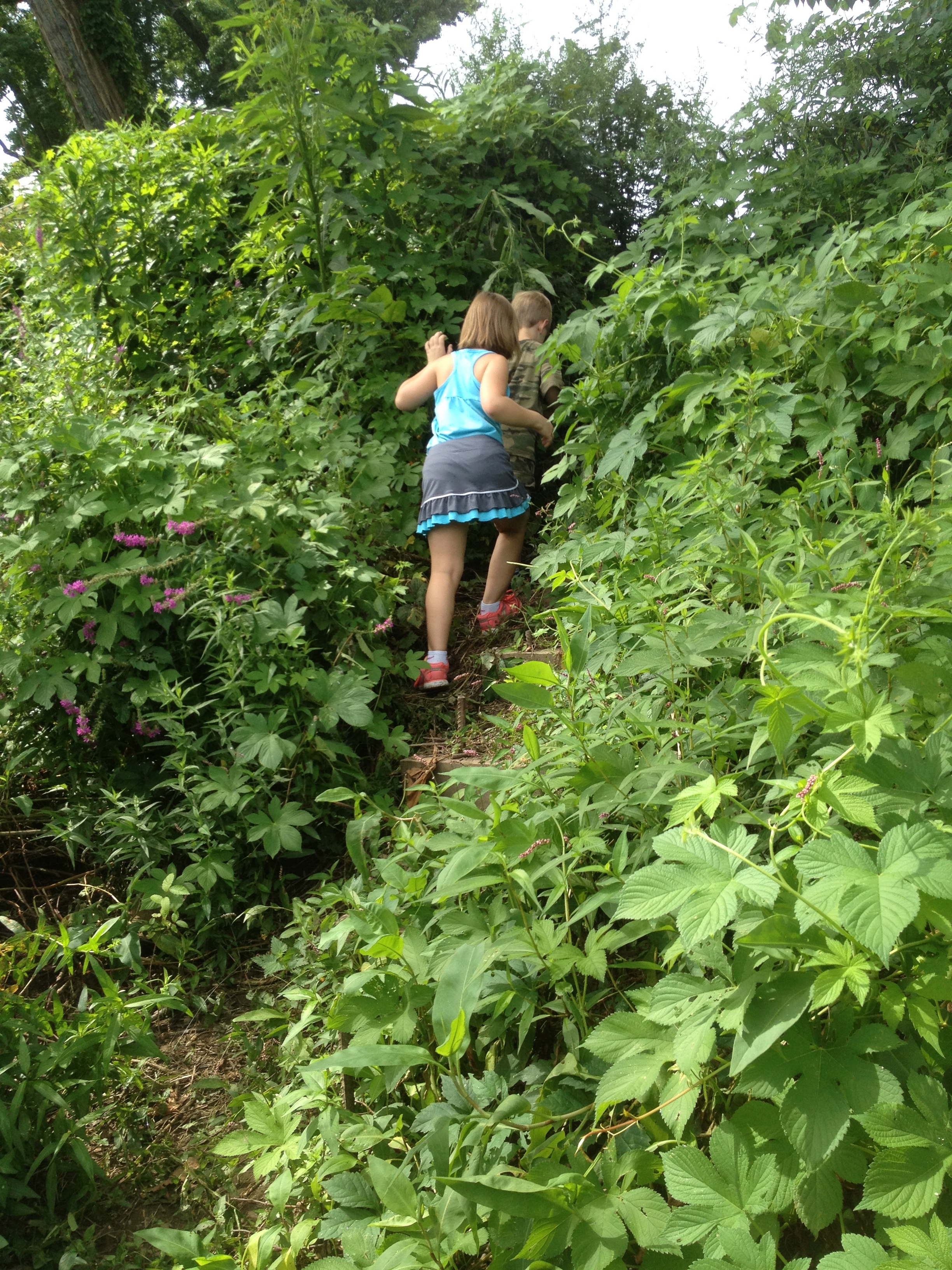 So as I am standing by the Inn in this lush green grass, I see a small trail that leads down to the river.  I grab my kids hands and we head down the path.  “Where are we going, Mom?” my four year old asks.  “On an adventure!” I reply.
